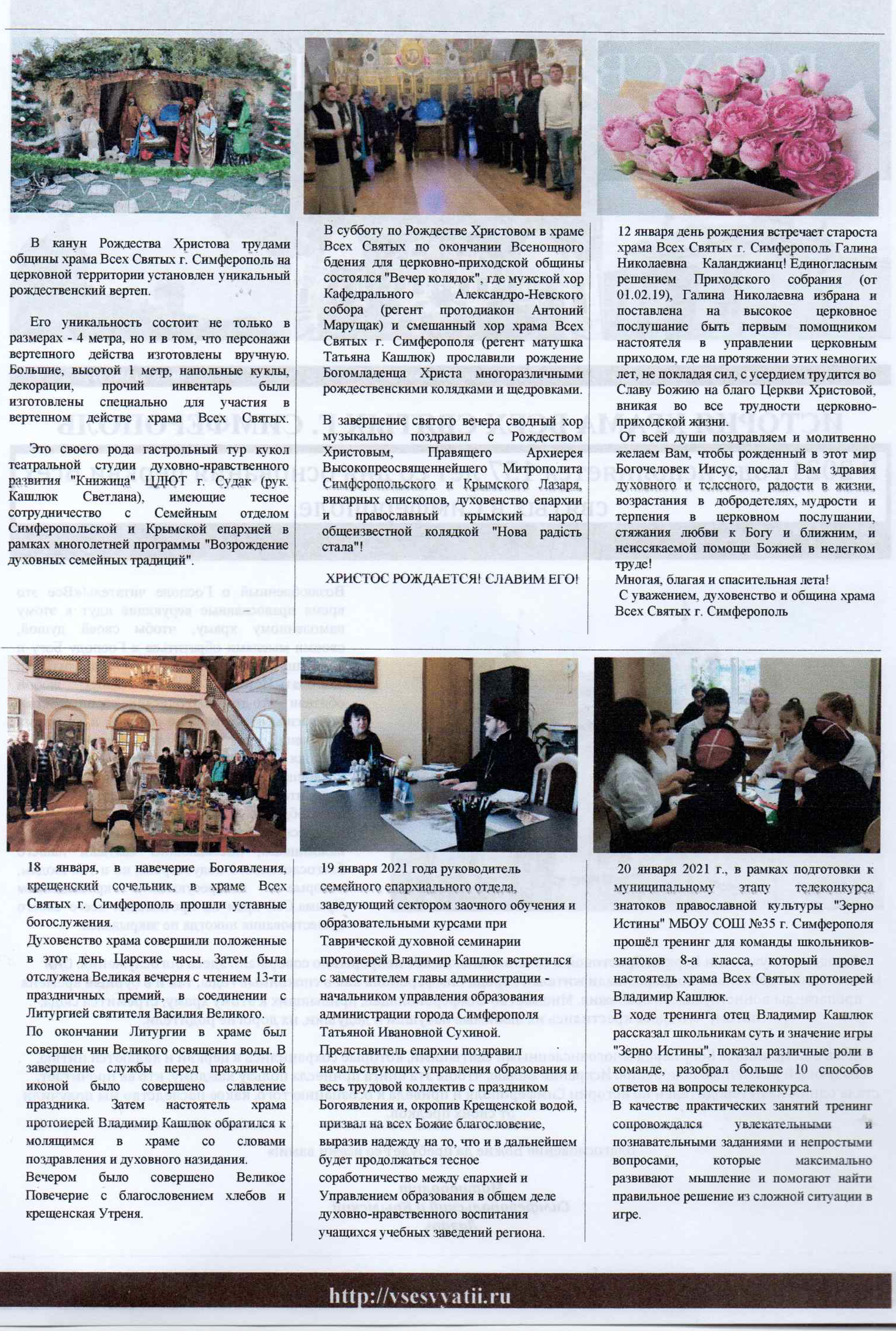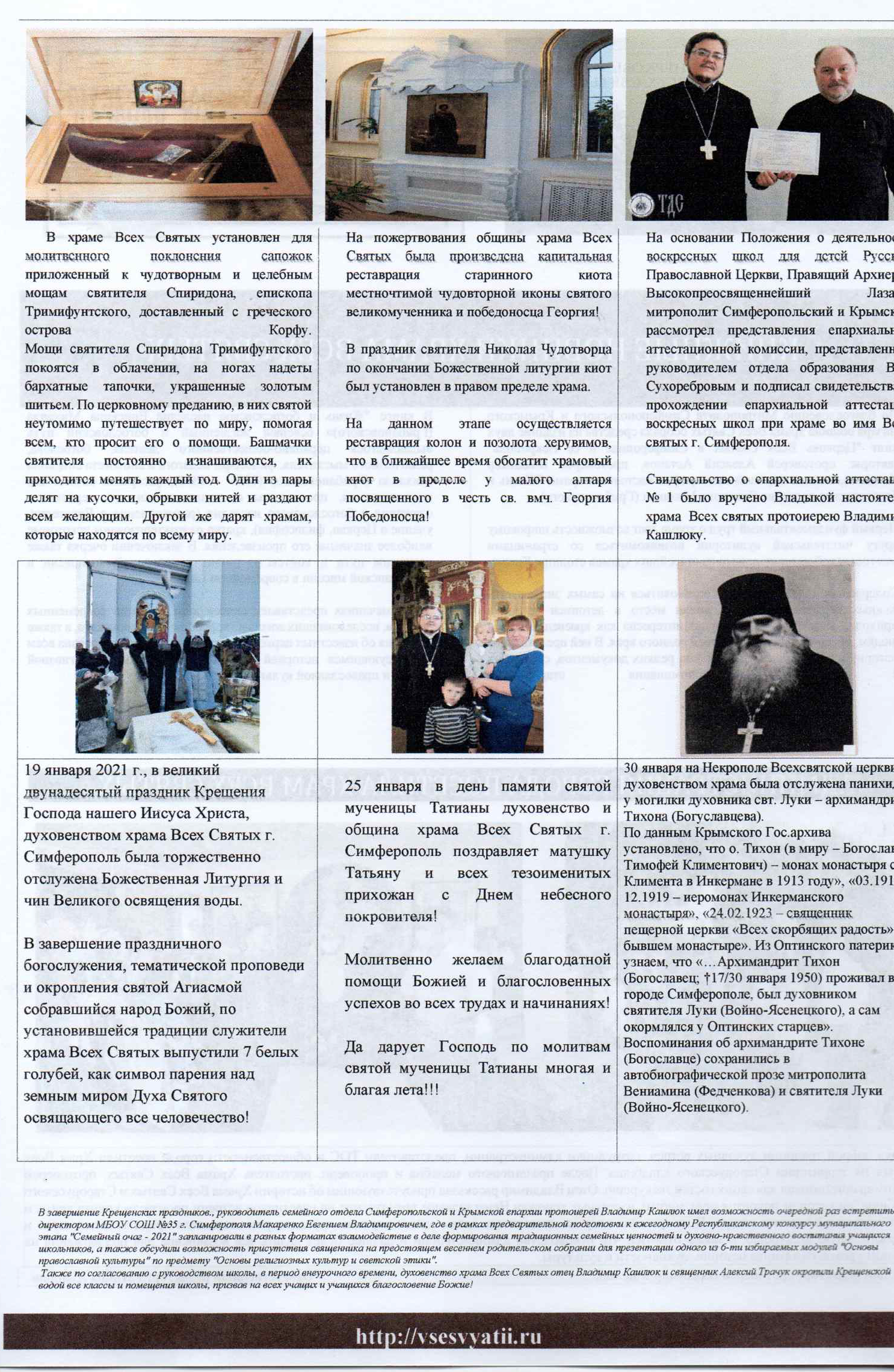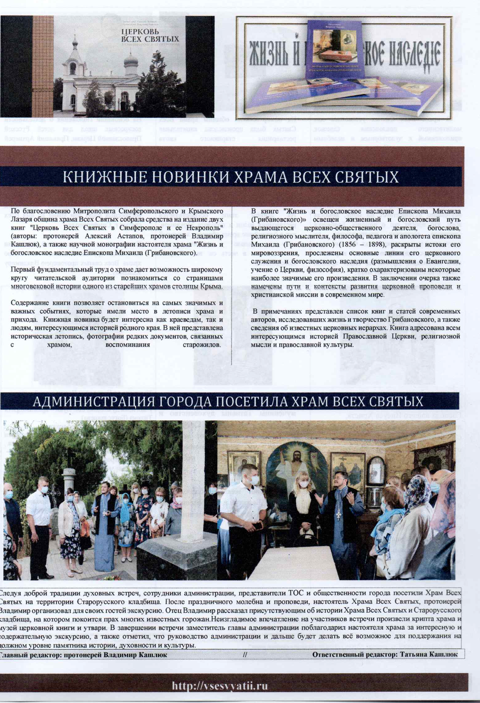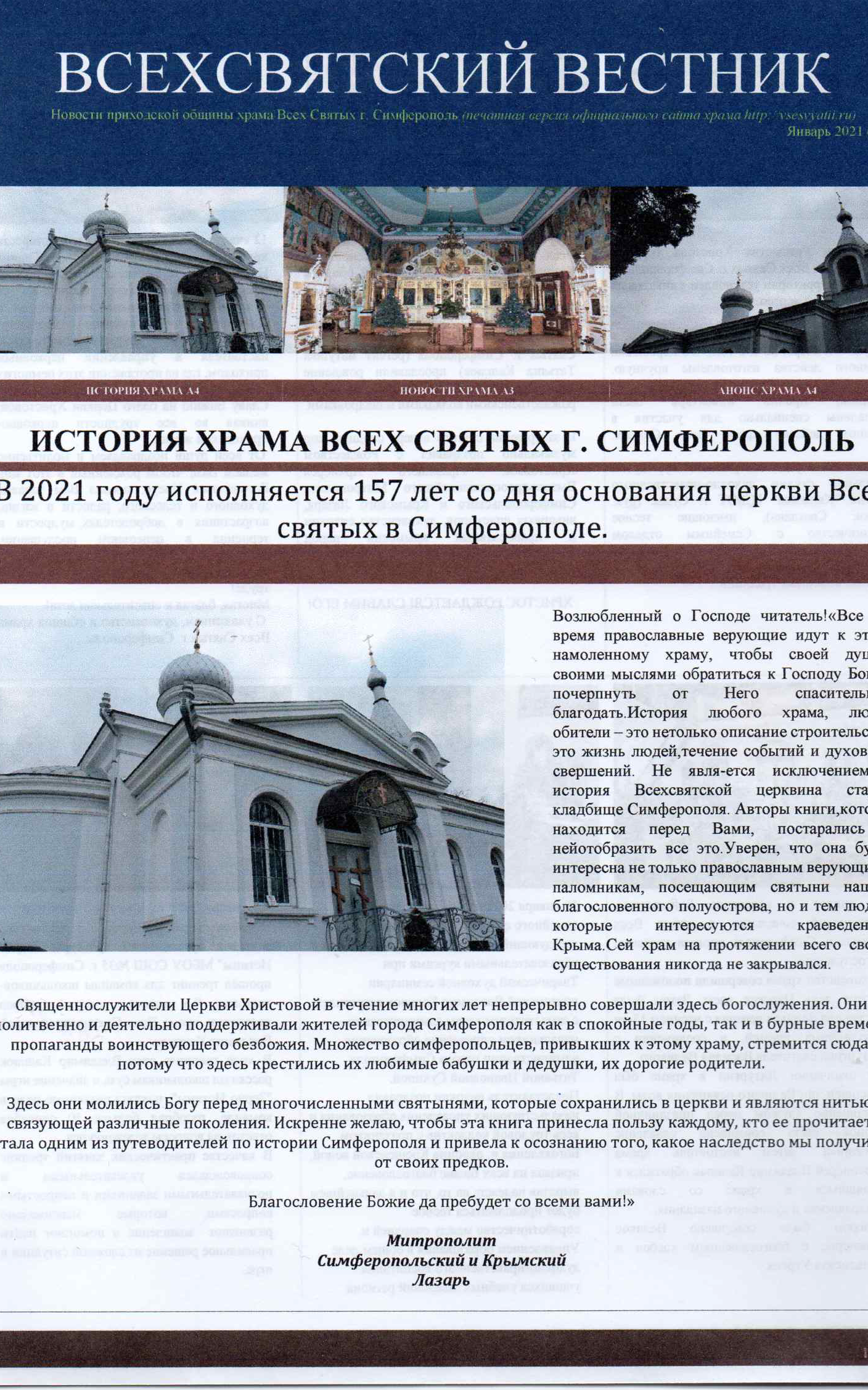 Предполагается, что в соответствии с определенным количеством новостного наполнения официального сайта vsesvyatii.ru, будет ежемесячно издаваться печать вестника для бесплатного распространения в храме Всех Святых г. Симферополь.